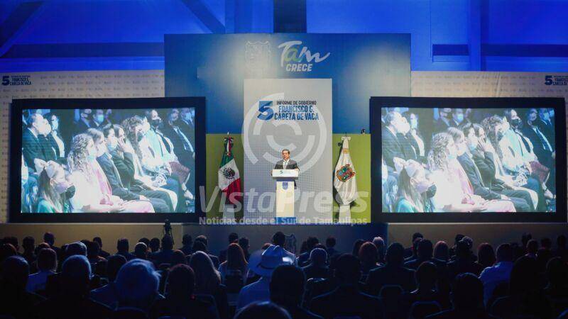 El 5° Informe de Gobierno de Francisco García Cabeza de Vaca se llevó a cabo en el Polyforum de Ciudad Victoria, luego de llevar a cabo la entrega del documento que contiene el estado que guarda la administración pública estatal, ante el Congreso de Tamaulipas.