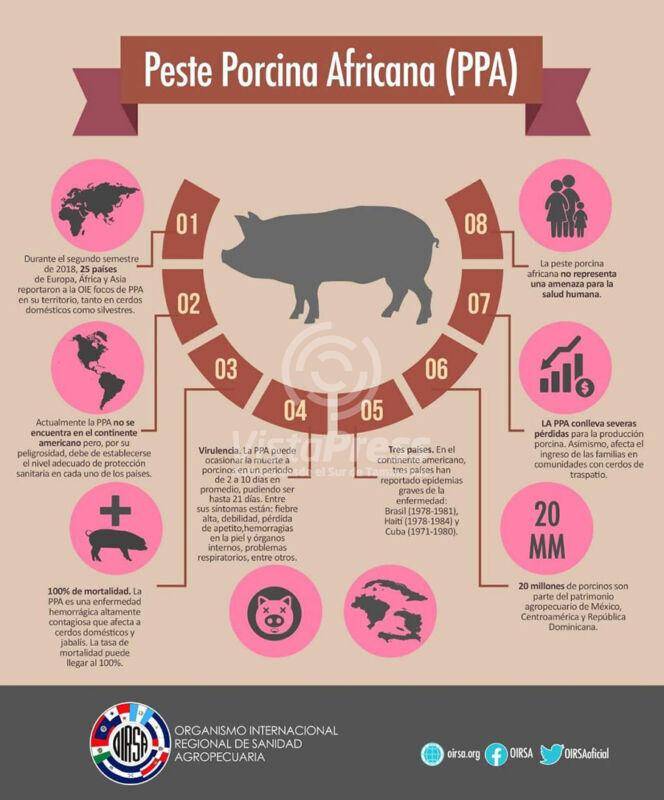 Precisan que se trata de una enfermedad altamente contagiosa que afecta a los porcinos y que puede contagiarse fácilmente, ocasionando la muerte de estos animales entre dos y 10 días con un índice de mortalidad del cien por ciento.