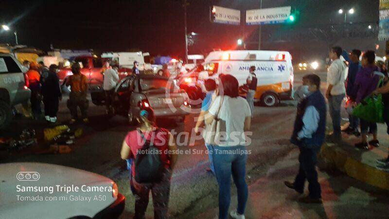 Altamira, Tam. Una mujer quedó prensada en el automóvil que conducía después de que fuera impactada fuertemente por una ambulancia del IMSS que trasladaba a una joven mujer con amenaza de aborto al IMSS en Ciudad Madero.