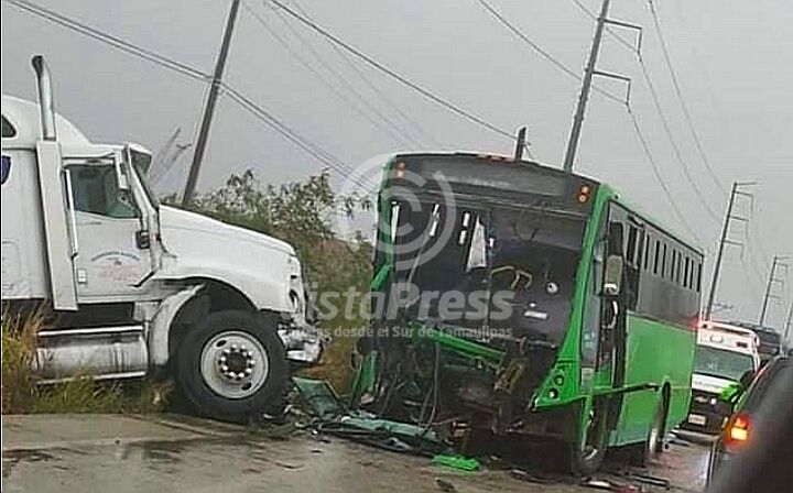 Pueblo Viejo, Ver.- Veinte trabajadores lesionados y un muerto, fue el saldo que dejó el choque entre un tráiler, un autobús de transporte de personal, y una unidad compacta.
