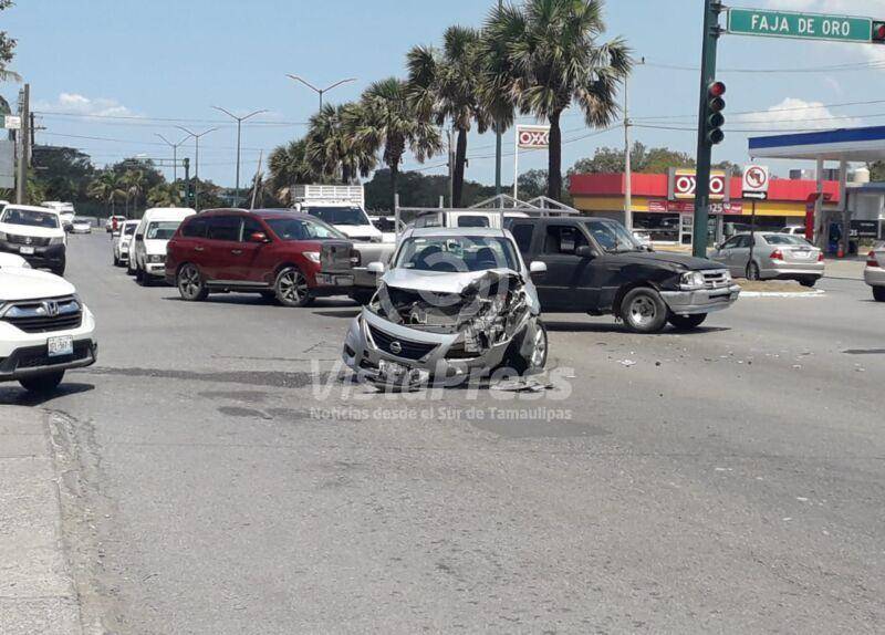 Tampico, Tam. Fuerte choque se registró al mediodía de este lunes en donde por fortuna no hubo personas lesionadas pese a lo aparatoso del impacto.