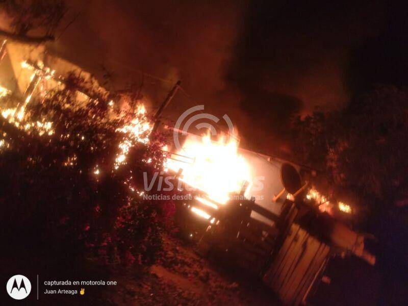 Madero, Tam.- Nueva familias se quedaron prácticamente en la calle, luego de que se les incendiara su vivienda poco antes del amanecer de este lunes; nada pudieron hacer para sofocar las llamas y salvar sus pertenencias.