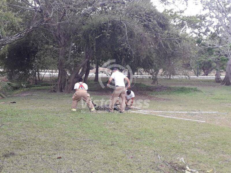 Una vez en ese lugar, lo inmovilizaron para llevarlo a un área verde donde consiguieron someter por completo al pesado cocodrilo para después subirlo a la batea de una camioneta.