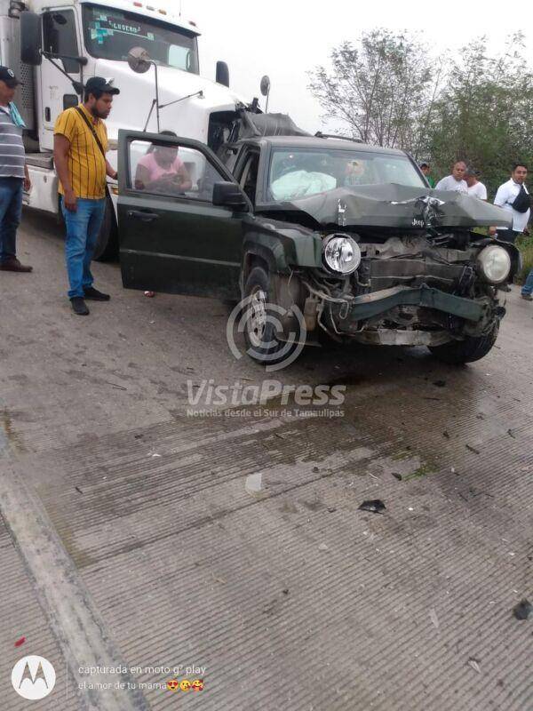 Pueblo Viejo, Ver.- Cuatro personas lesionadas, y elevados daños materiales, fue el percance que ocurrió esta mañana en la carretera El Prieto – la Anáhuac, dónde participaron dos camionetas y un tráiler.
