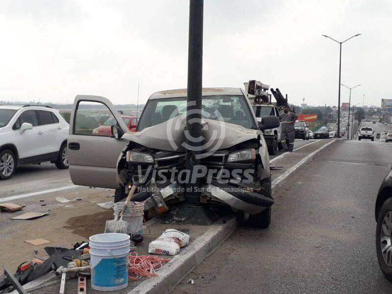 Tampico, Tam. Fuerte choque por alcance se registró la mañana de este jueves en el puente elevado denominado Tancol, en donde una de las camionetas involucradas terminó estrellándose en contra de un poste de alumbrado público.