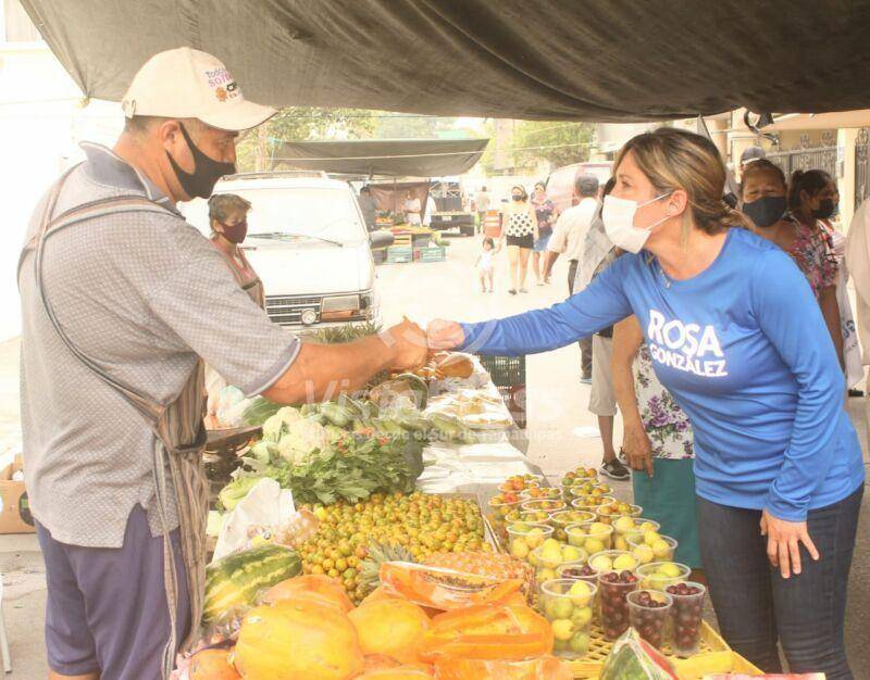 Durante sus recorridos en busca del voto, Rosa González, estuvo este miércoles en el mercado rodante de la colonia Lauro Aguirre y en la colonia Nuevo Amanecer, donde visitó casa por casa a los residentes de este importante sector.