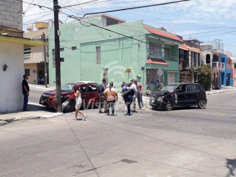 Tampico, Tam.- Tres personas resultaron con lesiones en un choque entre dos vehículos en un transitado crucero de la zona centro de la Ciudad.