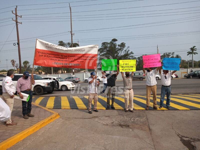 Madero, Tam.- A más de 32 años de haber sido liquidados de la empresa paraestatal Hules Mexicanos, un grupo de ex trabajadores protestaron la mañana de este domingo en la visita que realizó el presidente de la República a la Refinería Francisco I Madero, pues exigen que se les liquide conforme a la ley, además denunciaron omisión y contubernio del sindicato de Petroquímicos.
