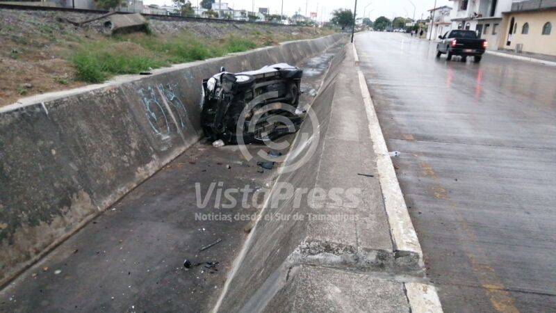 Tampico, Tam. Una camioneta terminó en el fondo de un canal pluvial, quedando abandonada, toda vez que los ocupantes salieron y corrieron para tomar un taxi e huir.
