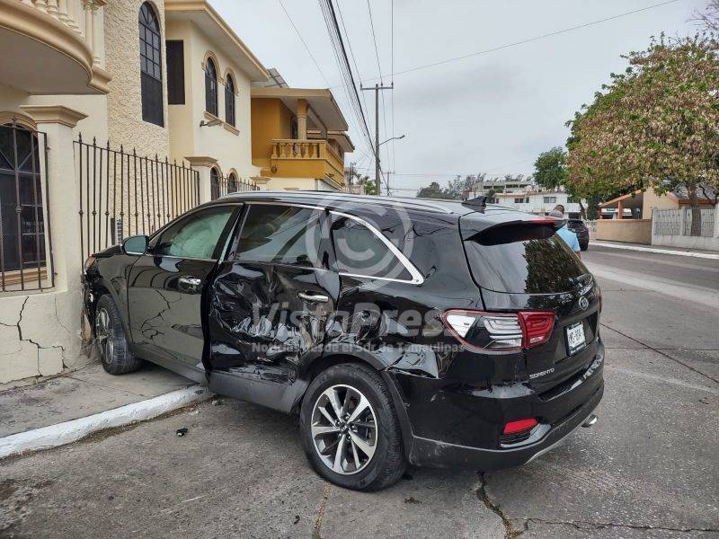 El choque se registró a las 10:00 horas en la calle 20 de Noviembre esquina con Obregón de la colonia Ampliación de la Unidad Nacional en donde participaron dos camionetas de reciente modelo que terminaron por impactarse en la barda de un domicilio.