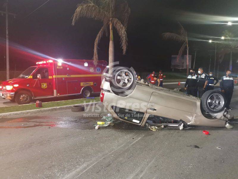 Tampico, Tam. Dos hombres y una mujer resultaron lesionados al volcar en la prolongación de la Avenida Hidalgo, quedando el auto compacto con las llantas hacia arriba: por fortuna sólo resultaron con lesiones leves que no ameritaron hospitalización.