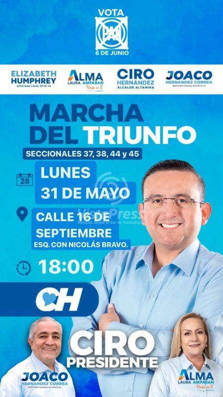 “Vienen a nuestro proyecto porque somos ganadores, aquí lo que está en juego es Altamira, aquí si hay liderazgo, aquí si hay chamba, hay trabajo político y hay consenso, hay vocación”, dejo claro Ciro Hernández quien aseguró que en el proceso del 6 de junio se confía una participación del 53 por ciento del electorado.