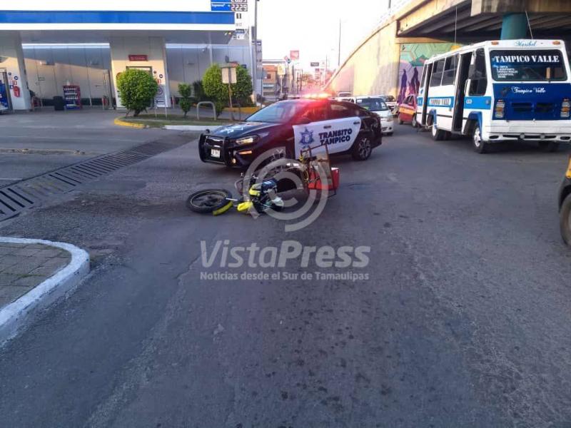 Al sitio acudieron elementos de Tránsito, así como de Radio Club Tampico, quienes le brindaron los primeros auxilios al motociclista para después trasladarlo a un hospital.