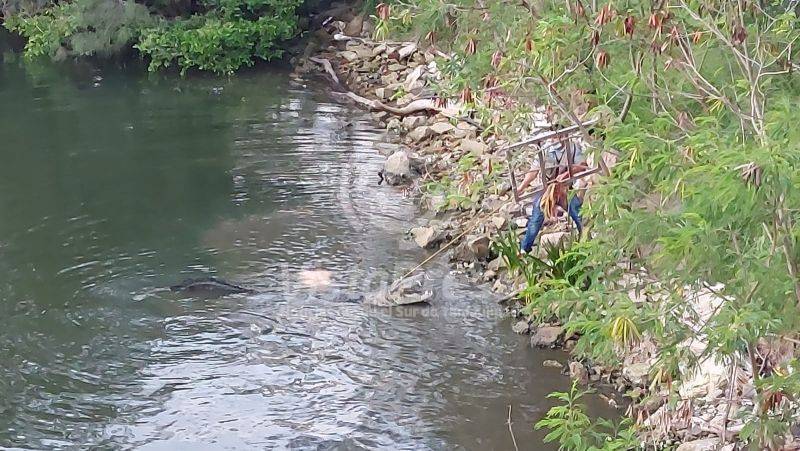 El lagarto fue localizado y atrapado por elementos de Bomberos, y el cuerpo de la mujer fue rescatado del agua.