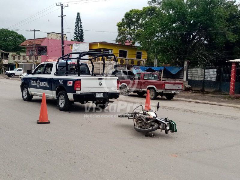 La colisión entre un motociclista y el conductor de una camioneta, dejó al conductor de la frágil unidad motriz con lesiones en diferentes partes de su cuerpo y elevados daños materiales.