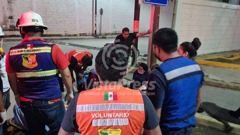 Altamira, Tam. Una motociclista resultó con una fractura en una de sus piernas luego de que fuera embestida por un taxi cuyo conductor sin tomar las medidas precautorias se fuera de reversa.