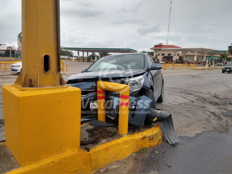 El vehículo siniestrado es uno de la marca Kia tipo Río color azul metálico de reciente modelo, con placas del estado de Tamaulipas.