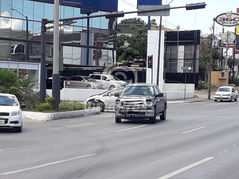 Tampico, TAM. Fuerte percance vial entre dos camionetas ocasionó un caos en la Avenida Hidalgo esquina con calle Lomas del Rosales