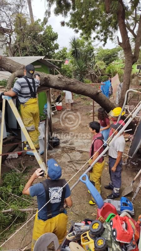 Asimismo, por la mañana se reportó la caída de un árbol sobre una vivienda en la calle Antonio Díaz número 508 de la colonia Emiliano Zapata, acudiendo los Bomberos para retirarlo, sin que se registraran mayores afectaciones.