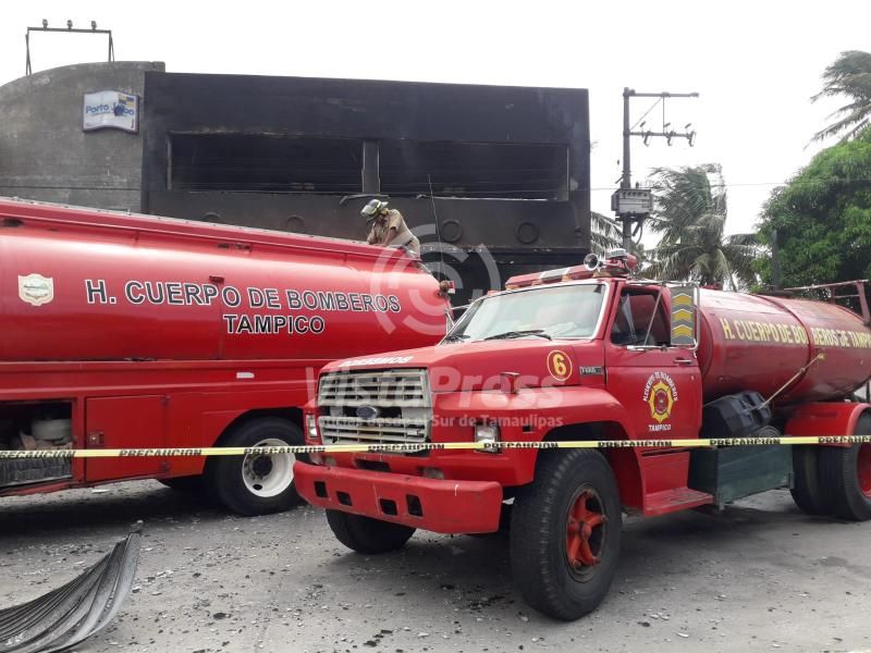 Tampico, Tam. Fuerte incendio en una bodega de reparación de barcos se registró la tarde de este sábado en la colonia Morelos en donde tuvieron que asistir cinco unidades de Bomberos para sofocar las llamas.