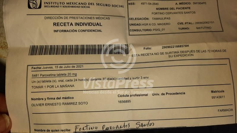 «Tiene meses que no dan medicamento en el IMSS, entre otros la Metformina y varios que no traigo la receta pero es desde hace 3 meses, dicen que no hay, no hay, sólo dan largas, dése una vuelta a ver si ya llegó, tengo dos años con este problema», indicó.