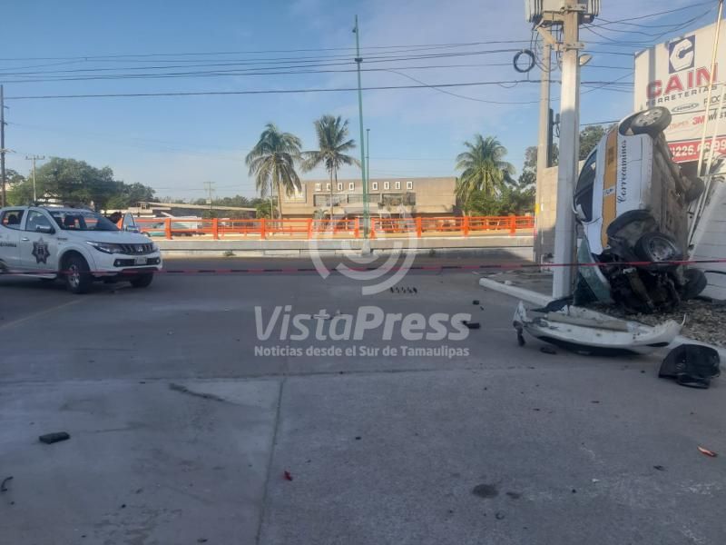 Altamira, Tam. Una persona lesionada y daños de consideración es el saldo de fuerte percance vial ocurrido la mañana de este domingo en la lateral del puente del Barquito.