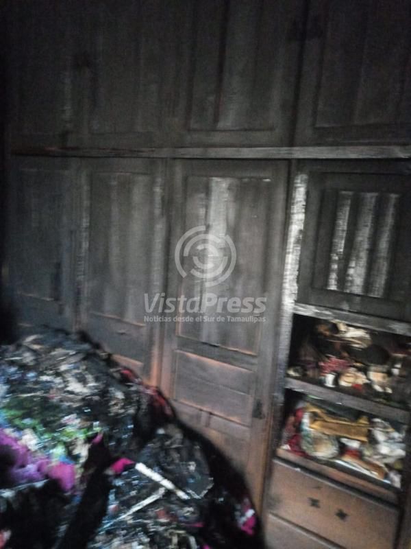 Madero, Tam.- Una de las recámara de una vivienda terminó completamente calcinada, luego de que se registra fuerte incendio a causa de un corto circuito en un calentador de ambiente.
