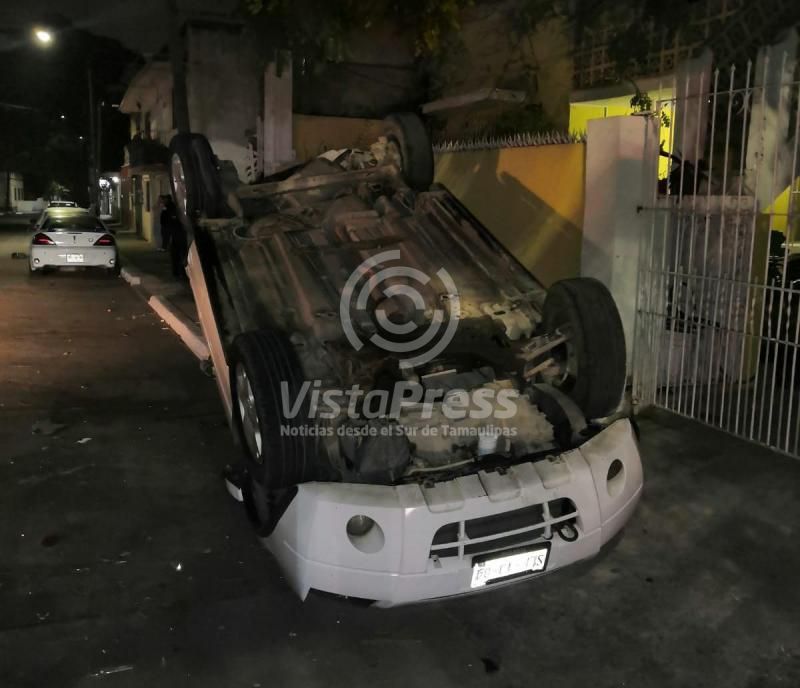 Tampico, Tam.- Una camioneta que estaba estacionada terminó volcada tras ser impactada por otro vehículo, guiado a velocidad inmoderada.