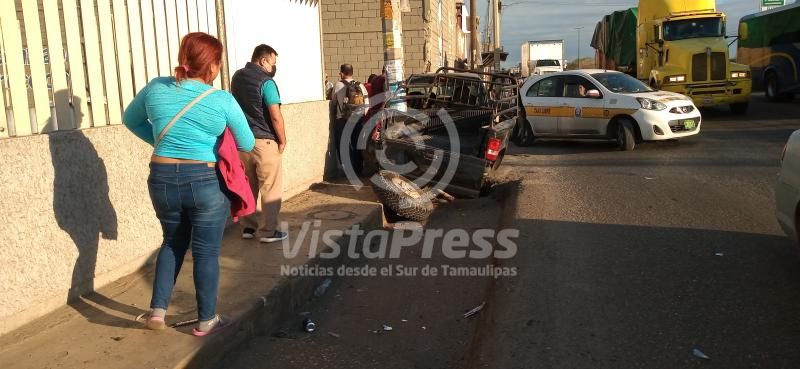 La camioneta sale proyectada hasta la banqueta en donde se impacta fuertemente en contra de un poste de concreto de la CFE.
