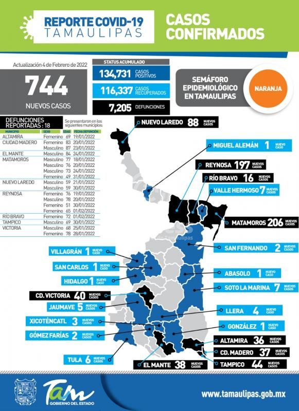 CIUDAD VICTORIA, TAMAULIPAS.- En su reporte COVID-19 de este sábado, la Secretaría de Salud de Tamaulipas confirmó 940 positivos y 15 defunciones, insistiendo en su llamado a proteger a los más vulnerables y evitar sitios aglomerados para desacelerar la curva de