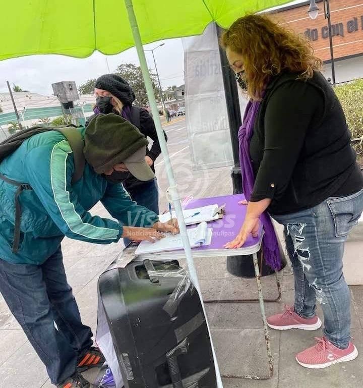 Madero, Tam.- Con la finalidad de que los regidores del Partido del Trabajo de esta ciudad sean removidos de sus cargos debido a que tiene pendiente un proceso legar por violencia en contra de una mujer, un grupo de feministas están recabando firmas frente al Palacio Municipal.