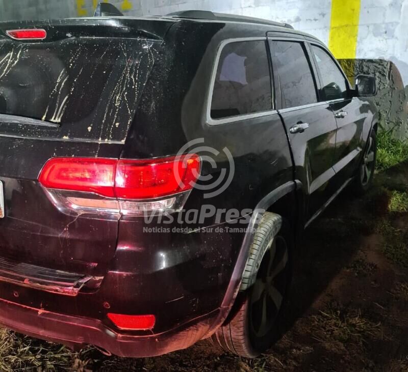Minutos mas tarde, alrededor de las 16:45 horas, al continuar con el patrullaje en las calles del ejido Nuevo Camargo, Policías Estatales ubicaron en condición de abandono con las puertas abiertas la otra camioneta, una Jeep Grand Cherokee color negro, con blindaje de agencia y portaba placas del estado de Guerrero.