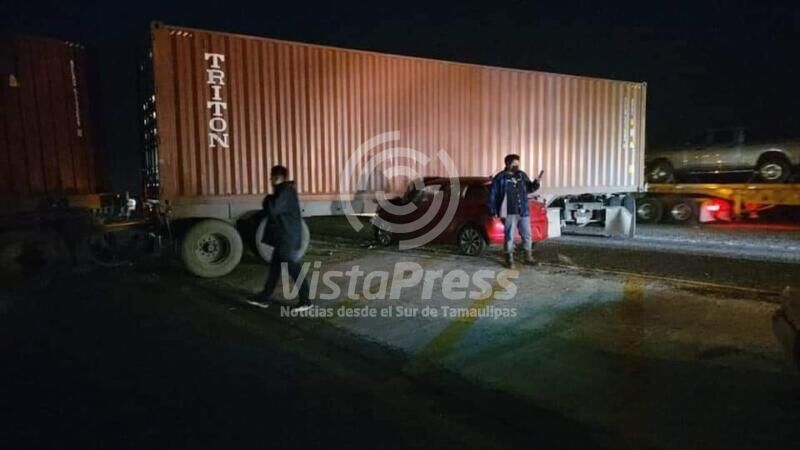 Esto sucedió a la altura del kilómetro 68, tramo de Villa Cuauhtemoc-Estación Manuel, en donde un vehículo era conducido de sur a norte y se impacta en la parte media de una plataforma cargada con un contenedor de un tráiler que pretendía dar vuelta en «U».