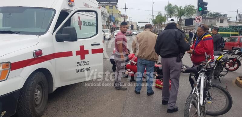 Madero, Tam.- Un motociclista repartidor de comida que iba acompañado por una jovencita, resultaron lesionados al impactarse en contra de una camioneta en plena zona centro de la ciudad.