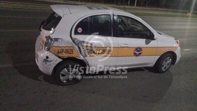 Se trata de un vehículo de la marca Dodge Atos color blanco modelo 2014, mismo que impactó un taxi de la marca Nissan March conducido por Cristian Rafael Orozco.