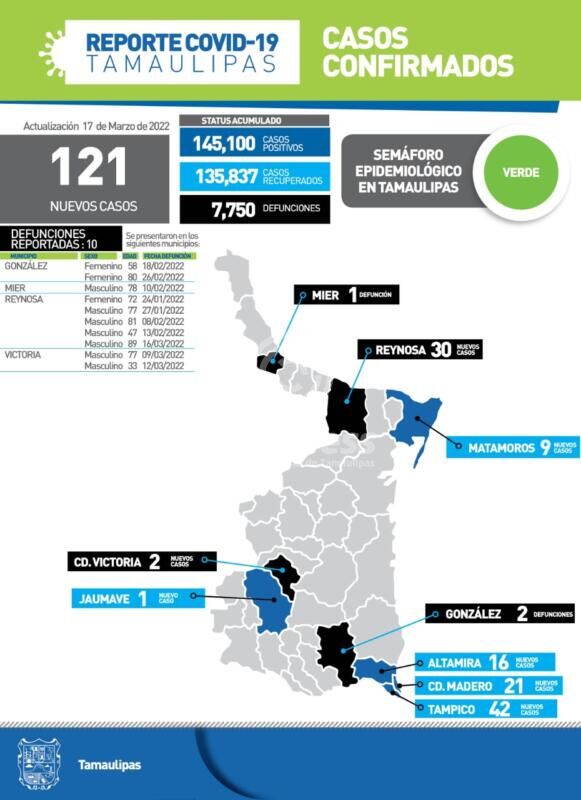 Al presentar el reporte diario de la pandemia, la dependencia confirmó 121 nuevos casos y 10 fallecimientos asociados a complicaciones graves por el virus, de ahí la importancia de mantener el control de enfermedades como obesidad, hipertensión o diabetes, principalmente.