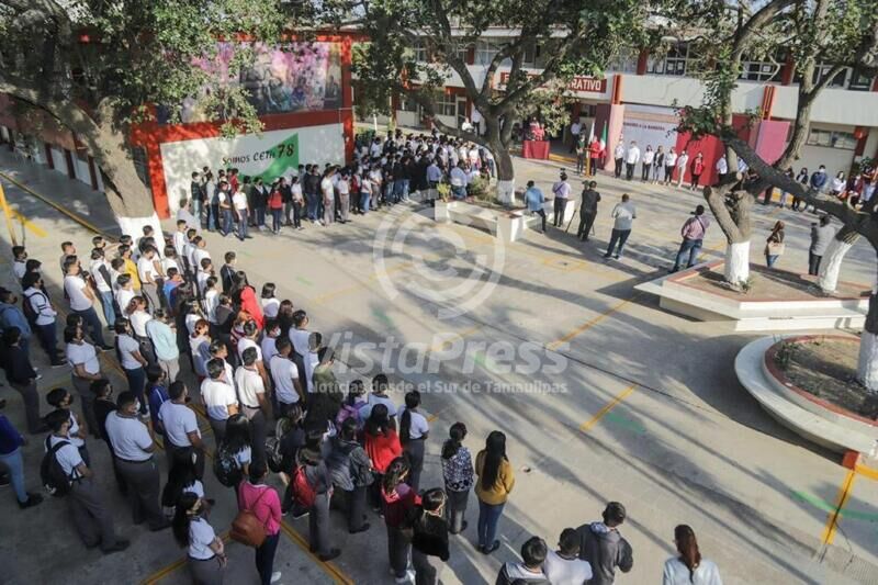 Altamira, TAM.-Continuando con el objetivo de estrechar lazos con el sector educativo, el presidente municipal de Altamira, Mtro. Armando Martínez Manríquez acudió al CETIS 78, ubicado en la colonia Tampico – Altamira para efectuar la tradicional ceremonia cívica de honores al lábaro patrio.