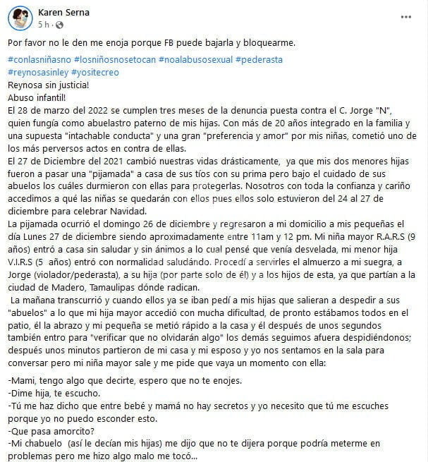 Los agentes de la Patrulla Fronteriza localizaron y deportaron al imputado, entregándolo a los elementos de Fiscalía General de Justicia de Sonora, quienes cumplimentaron la orden judicial emitida por un juez de control, concedida después de que el Agente del Ministerio Público, adscrito a la Fiscalía Especializada en la Investigación de Delitos contra Niñas, Niños y Adolescentes y Delitos contra las Mujeres por Razones de Género, presentara elementos que implican al detenido en el citado delito registrado el 26 de diciembre en la colonia Vista Hermosa de esta ciudad fronteriza.
