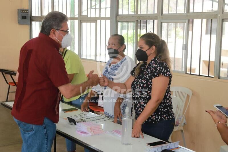 Altamira, Tam.- Ejerciendo su derecho a votar en la revocación de mandato del poder ejecutivo federal, el presidente municipal de Altamira, Mtro. Armando Martínez Manríquez acudió a muy temprana hora en compañía de su familia a la Escuela Secundaria General No. 1 “Benito Juárez García” ubicada en el corazón de la ciudad.