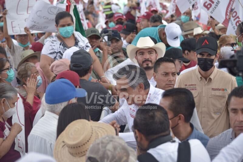 Aquí ante miles de habitantes que ondeaban las banderas guindas, el candidato de “Juntos Hacemos Historia en Tamaulipas “, Américo Villarreal, dijo “nosotros ya no queremos la continuidad de los prianistas que han dañado tanto a la entidad”.