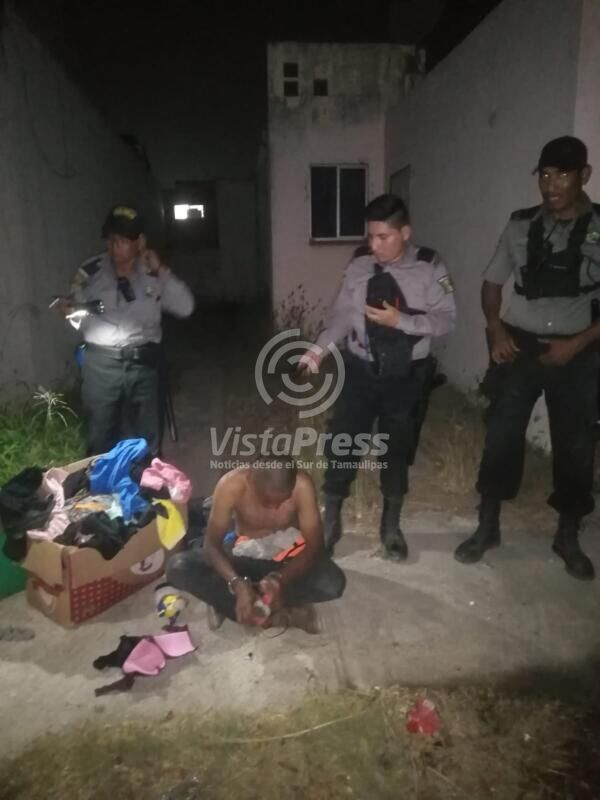 Altamira, Tam.- Un sujeto fue detenido por Veladores del Sur de Tamaulipas tras ser sorprendido robando ropa íntima del tendedero de su vecina por lo que fue entregado a la Policía Estatal y encerrado en la ergástula municipal.