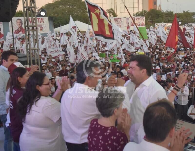Acompañado por seis senadores de la República, la secretaria general del CEN de Morena, Citlalli Hernández, diputados federales y locales y más de 15 mil personas, el candidato de Morena, PVEM y PT a la gubernatura de Tamaulipas afirmó: