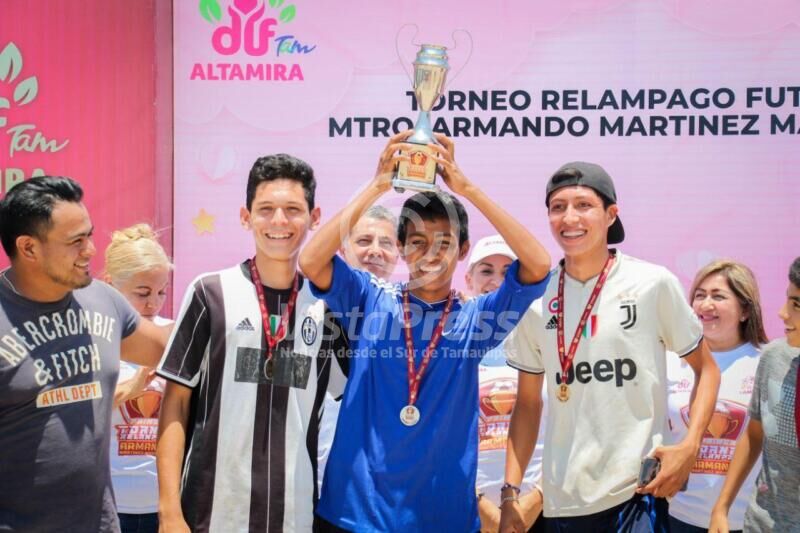 Altamira, Tam.- Una amena tarde familiar vivieron niños y jóvenes de diversos sectores de la urbe industrial durante el partido de fútbol rápido “Armando Martínez Manríquez”, organizado por el Sistema DIF Altamira y efectuado en el campo del Tamul Arboledas.