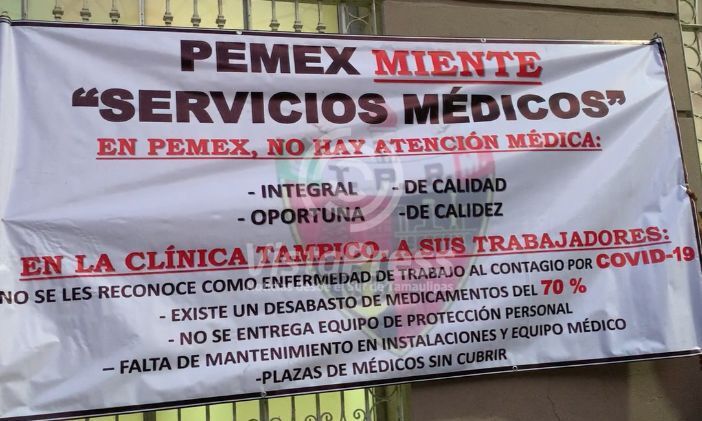 «Nos estamos manifestando de manera pacífica por las deficiencias que existen en el sistema de Salud de Petróleos Mexicanos. Actualmente tenemos trabajadores que se enfermaron de COVID en áreas de trabajo y no se los quieren reconocer como enfermedad de trabajo», indicó.
