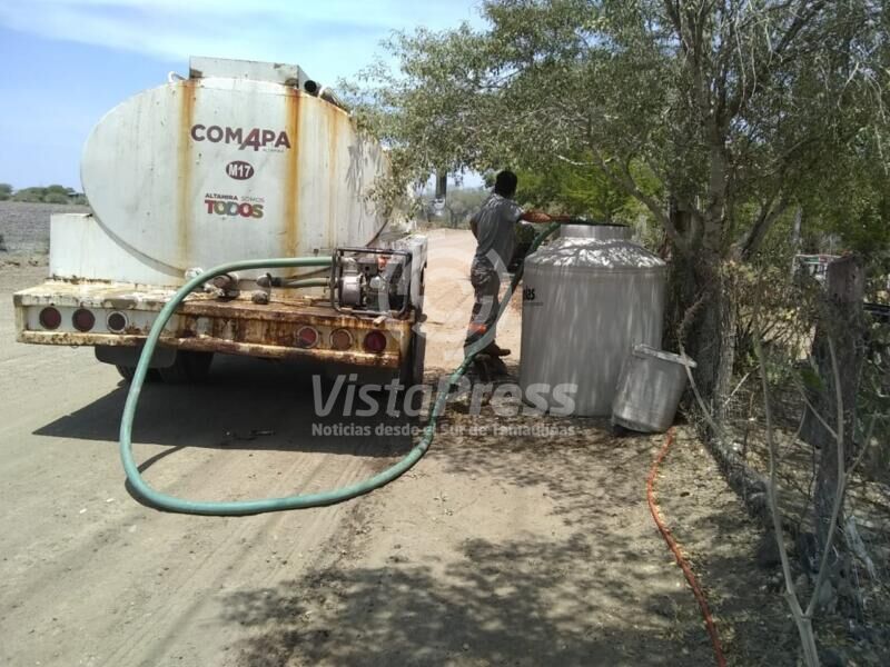 La Comisión Municipal de Agua Potable y Alcantarillado de Altamira está distribuyendo agua mediante pipas en ejidos y comunidades rurales de este municipio, para surtir del vital líquido a los residentes de esas localidades que afrontan dificultades para abastecerse a causa de la sequía que se viene registrando.