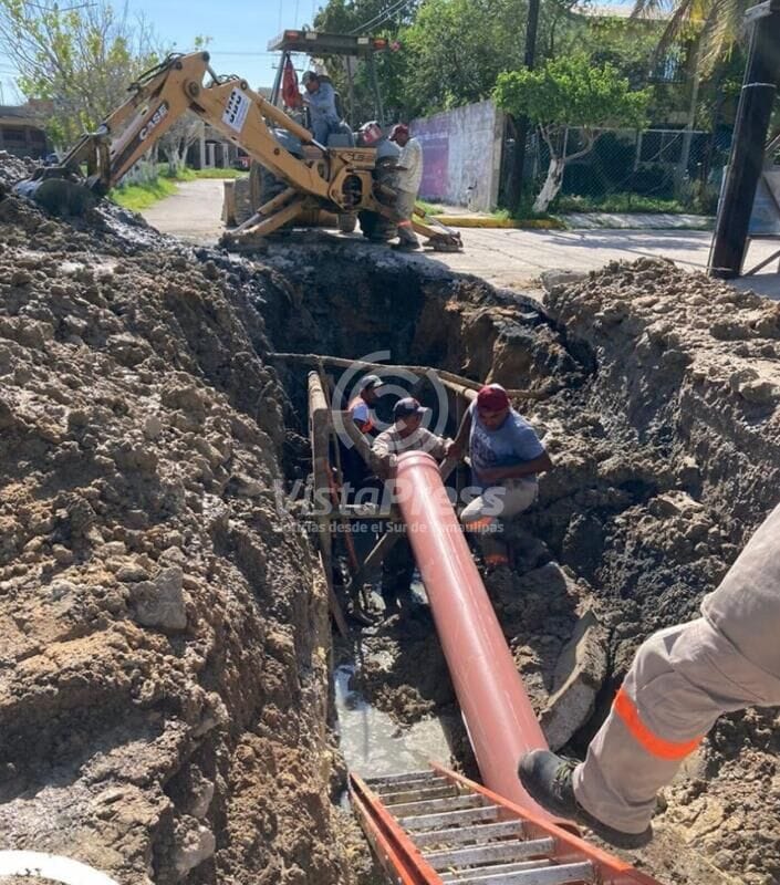 Solucionando de una manera rápida los problemas de escurrimientos y estancamiento de aguas residuales, trabajadores de la Comisión Municipal de Agua Potable y Alcantarillado de Altamira realizaron labores de reposición, reparación y mantenimiento de colectores de drenaje en los sectores Ganadera, López Mateos, y Altamira 2.