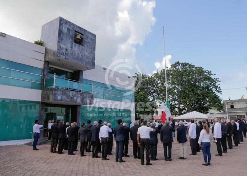 El evento se llevó a cabo en la explanada de la presidencia municipal con el izamiento a media asta de la bandera y la entonación del Himno Nacional con el acompañamiento de la Banda Municipal