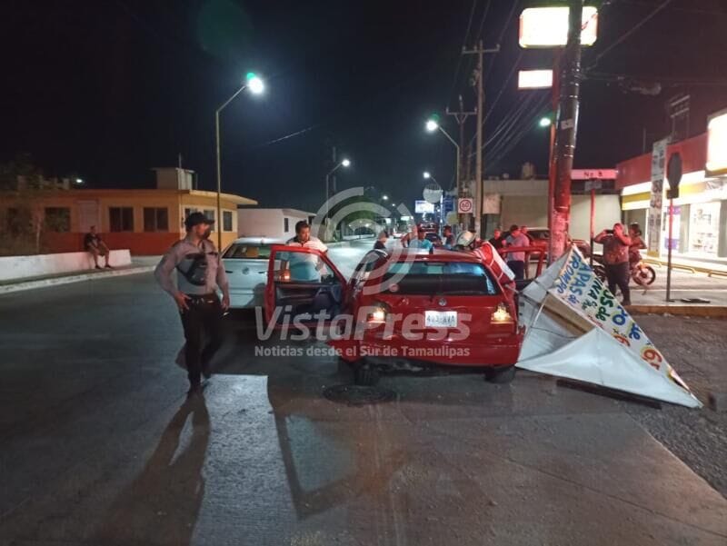 Tampico, Tam.- Una mujer lesionada, así como fuertes daños materiales fue el saldo de aparatoso percance vial ocurrido la madrugada de este miércoles en las afueras de una taquería en el norte de Tampico.