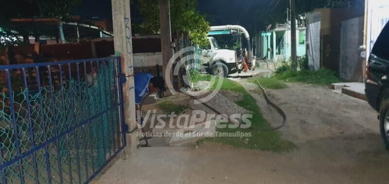 Altamira, Tan.- Con la finalidad solucionar los problemas de taponamientos en la red de drenaje, se llevaron a cabo acciones de sondeo, desazolve, mantenimiento, y limpieza de registros en calles del Fraccionamiento Santa Elena y de la colonia San Antonio.
