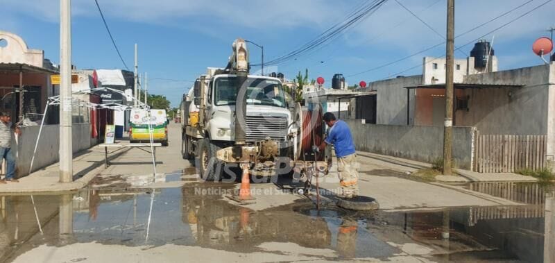 En la calle Salvador Díaz Mirón, entre Revolución Humanista y Benito Juárez, de la colonia Tampico-Altamira, se realizaron labores de mantenimiento a la línea general de drenaje, mientras que acciones de sondeo y limpieza en línea general y pozo de visita se efectuaron en calle Lirios, esquina con Carmín, en la colonia Monte Alto.